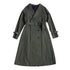 少し硬めのコットン素材でモードはもちろんカジュアルアイテムとも相性良く着用可能なカーキカラーのコート。