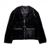 艶やかなベロア素材に、イタリア製の白銀のような光沢が美しいダブルジップを取り入れた、たいへんモードな1着です。